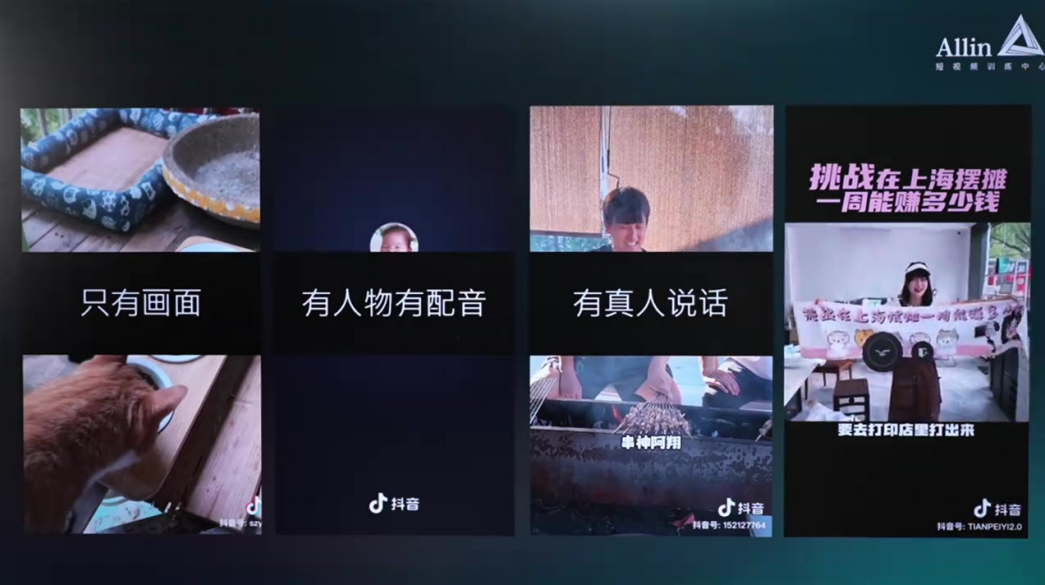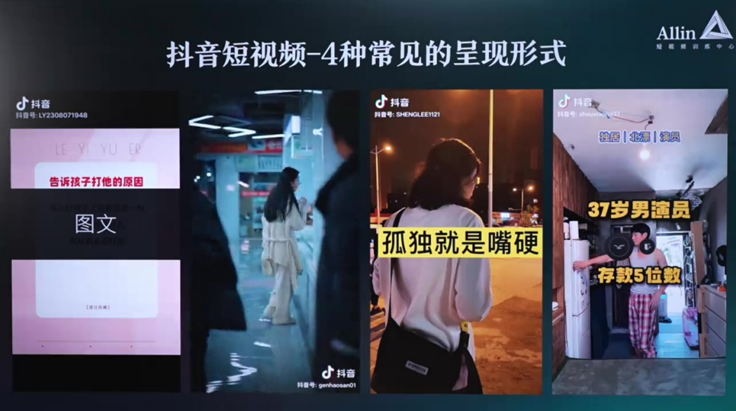 抖⾳常⻅的四种呈现形式 00:15