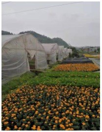 往前走两个棚,风一掀帘,明晃晃的橙黄色先撞进眼里。这是第二张图里的万寿菊苗,挨挨挤挤地举着花苞,像撒了一地小太阳。老陈掐了掐最外层的叶片,脆生生的汁液沾在指腹:“这批是给城里花坛订的,过两周就能移栽。去年这时候降温,好几棚苗冻蔫了,今年早早就把二层膜搭上了。” 远处的山尖还蒙着雾,棚里的花却已经热热闹闹地等着春深。